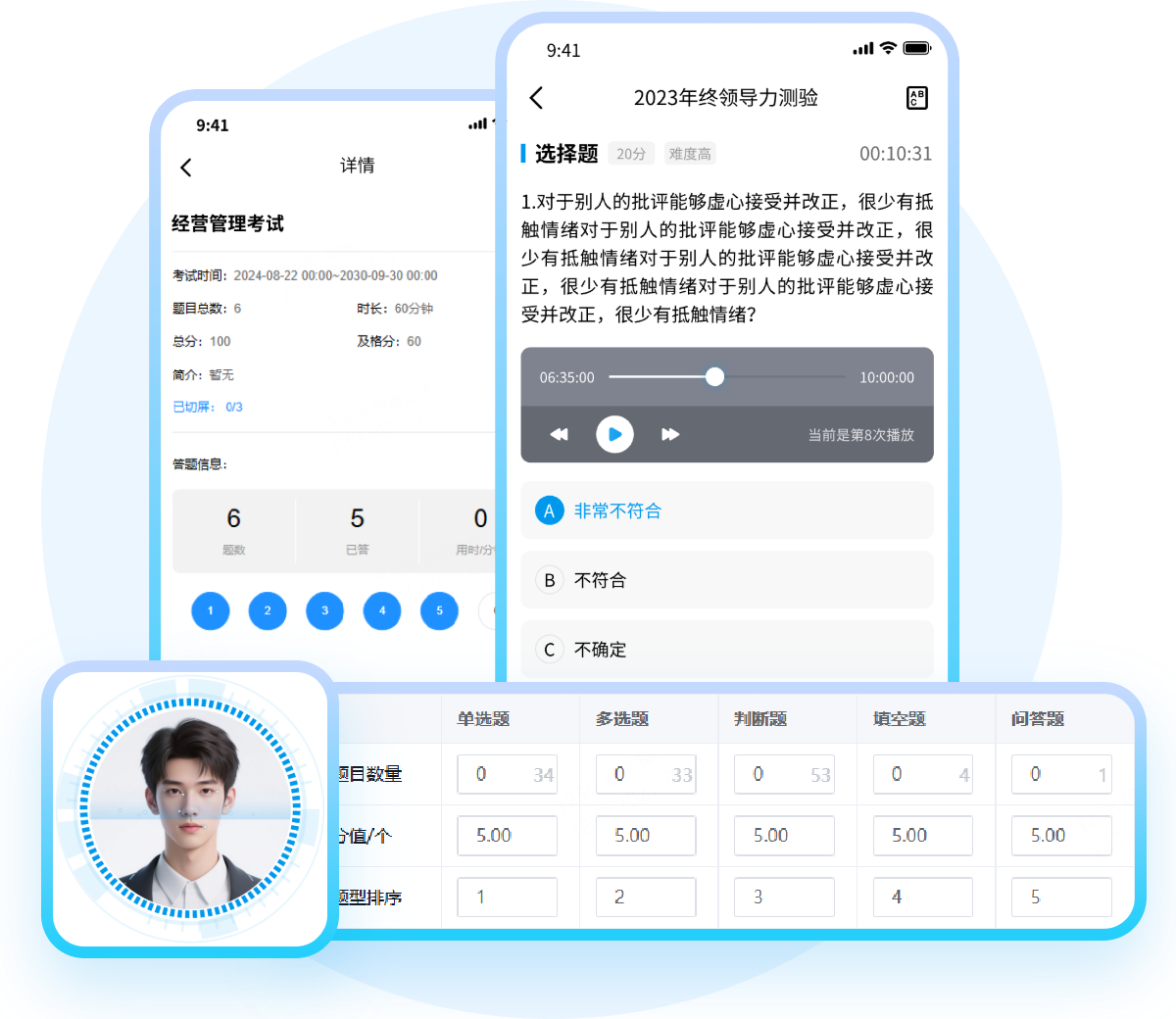 2. 人臉識別、防切屏、隨機組卷等功能智能防作弊