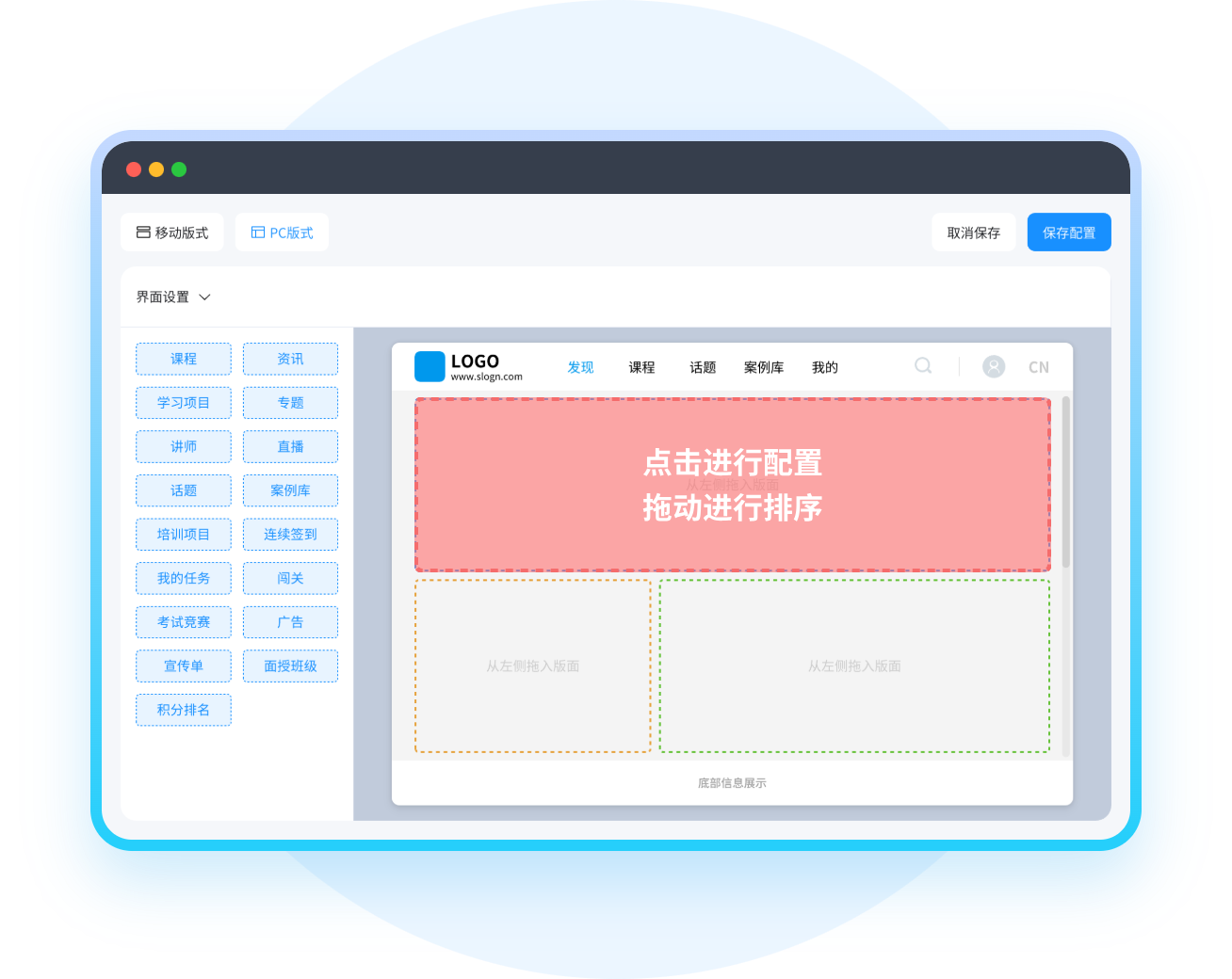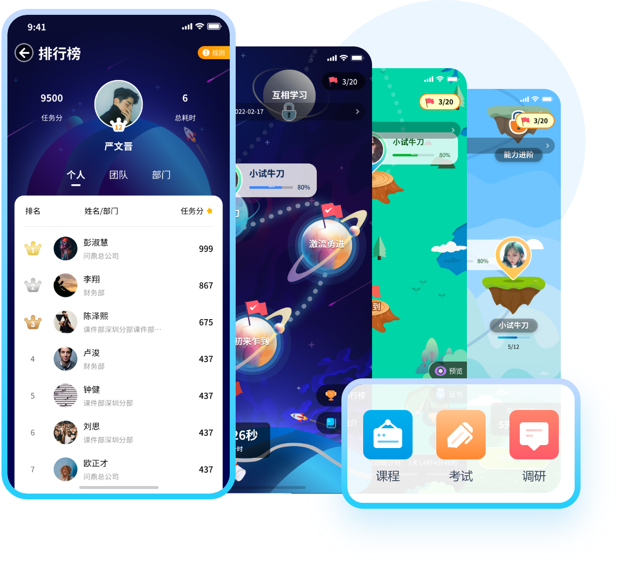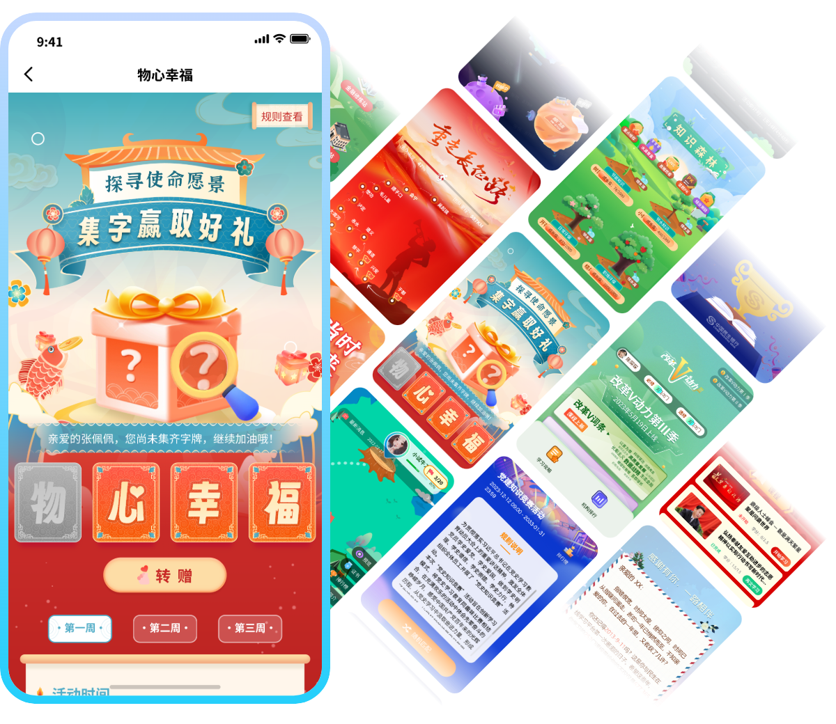 根據活動主題進行個性化UI設計及界面靈活配置,營造輕松學習氛圍,打造沉浸式學習體驗,調動學員學習積極性。